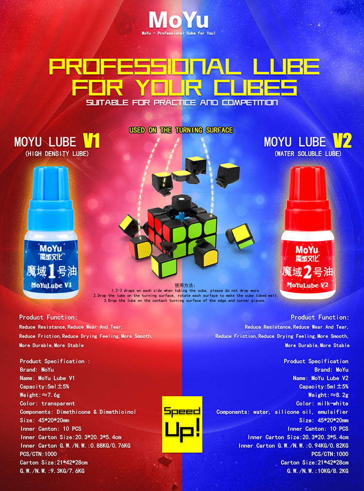 Moyu Lube V2 (5ml) enhances your cube-solving experience with faster, smoother, and more stable turns. Designed for speedcubers seeking precision, this lubricant reduces friction while maintaining control, allowing for effortless and consistent performance during solves. Ideal for improving both speed and stability in your puzzles.